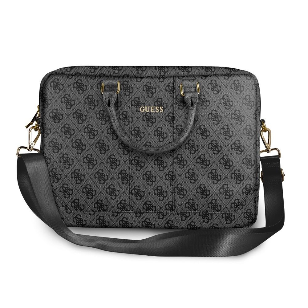 Elegantna torba priznane blagovne znamke Guess bo poskrbela za popolno zaščito vašega prenosnika. Primerna je za vse prenosnike velikosti do 15 inch. Torba ima ročaj za ročno nošenje in zraven priložen prilagodljiv pas od 60 do 130 cm, tako jo lahko nosite tudi preko rame. Ima glavni predal z oblazinjenim žepom za prenosni računalnik, ter dva ločena žepa za dodatke. Torba, ki se zapira z dvojno zadrgo ima tudi en zunanji žep, ki se zapre z vgrajenimi magneti.